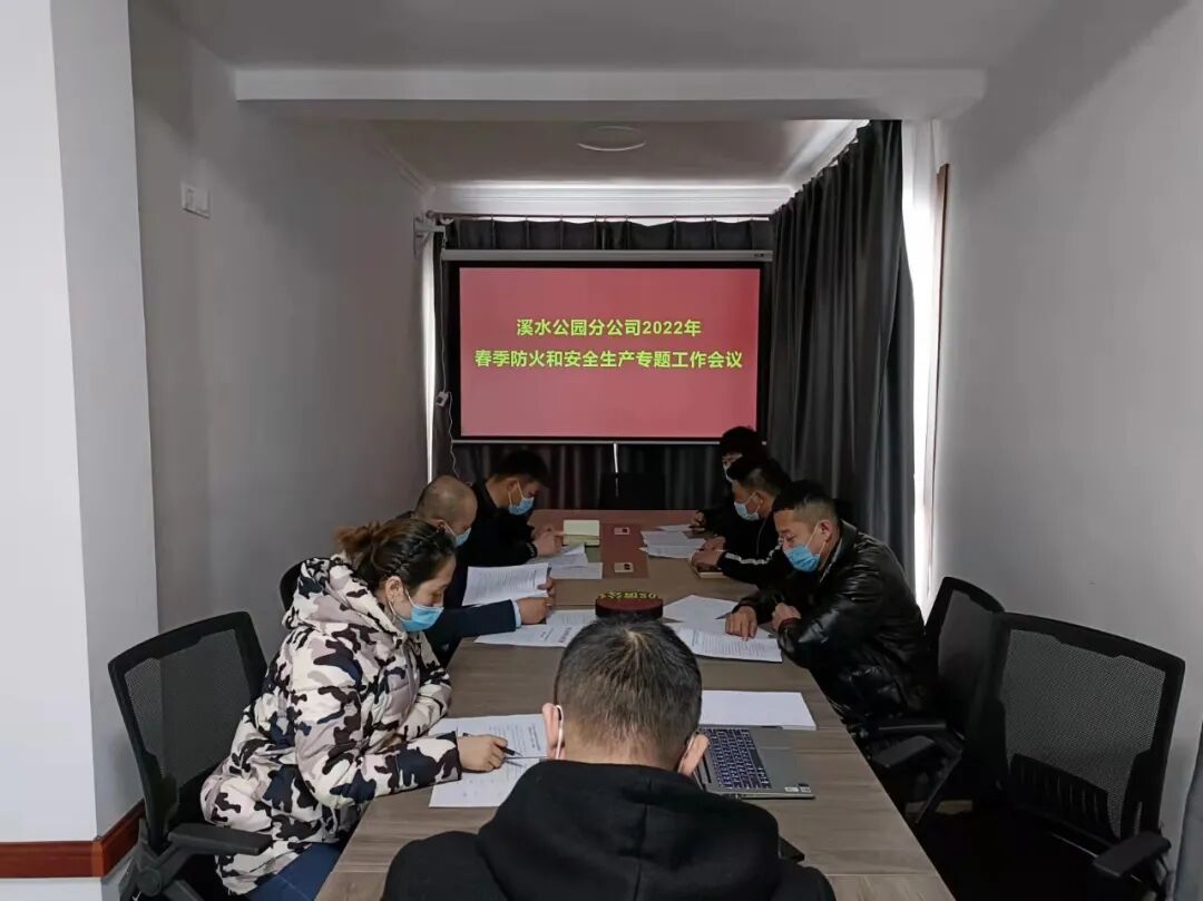 溪水公园分公司根据上级关于春季防火相关通知要求,组织召开春季防火和安全生产专题会议,会议传达省林业和草原局2022年森林草原防火和安全生产工作要点;省、市春防工作会议精神;伊春森工上甘岭林业局有限责任公司《关于做好2022年春防准备工作的通知》;并对溪水公园分公司春季防火和安全生产工作进行安排部署。