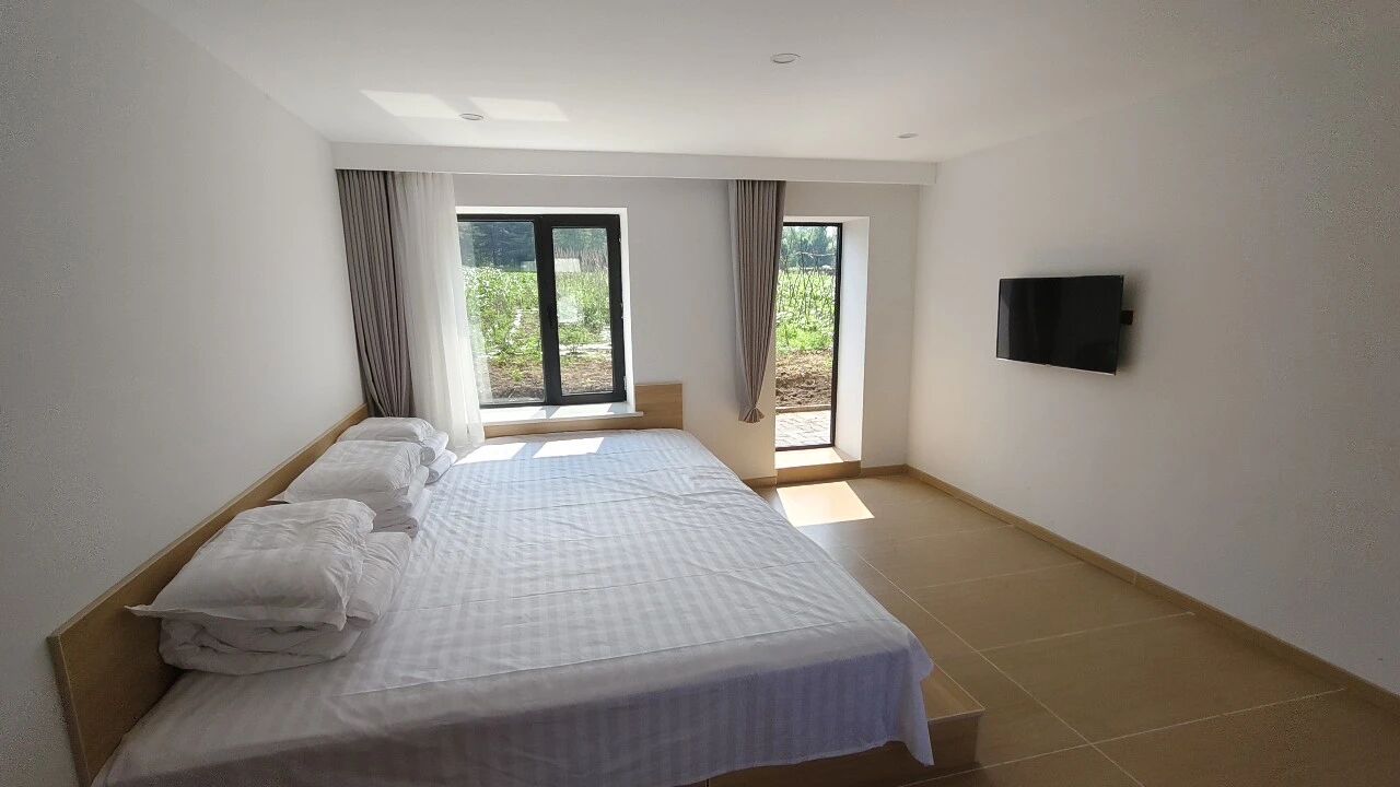 民宿以春、夏、秋、冬、风、花、雪、月等十二字为灵感,匠心打造 12 户特色庭院,一院一主题,一院一意境,既有乡野的质朴雅致,又兼具精致的居住体验。每一处庭院都独立私密,推门即是绿意,院落布局舒展,空间通透开阔,无论是独处静享,还是亲友小聚,皆自在惬意。